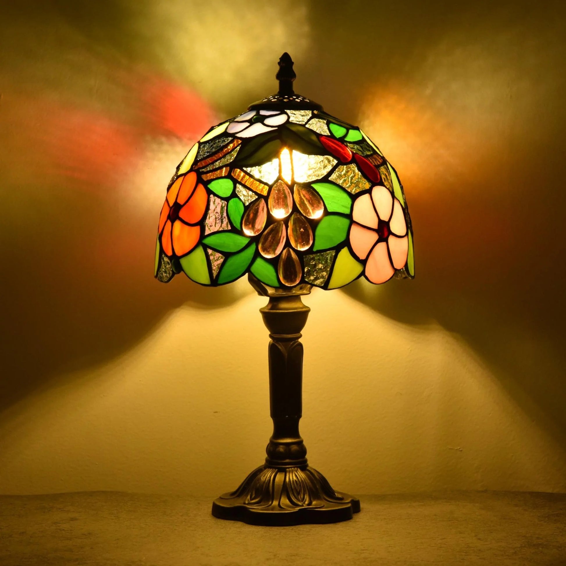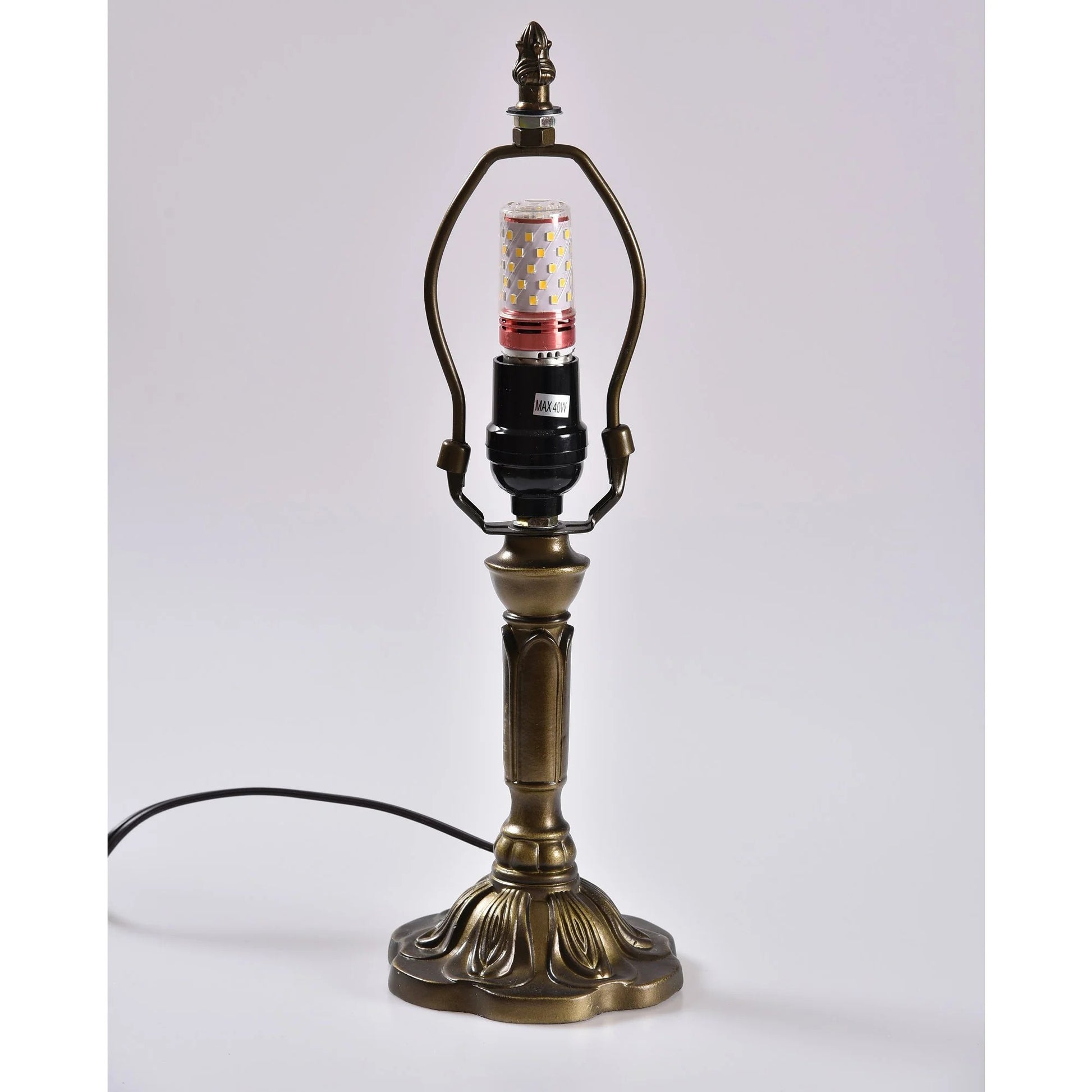 The Small Tiffany Table Lamp is perfect and will dazzle any room in the family home with a glass shade measuring 8 inches (19cm) wide and 15 inches (37cm) high. Faux Metal Base in Antiqued Bronze, 5 inches (12cm) wide.